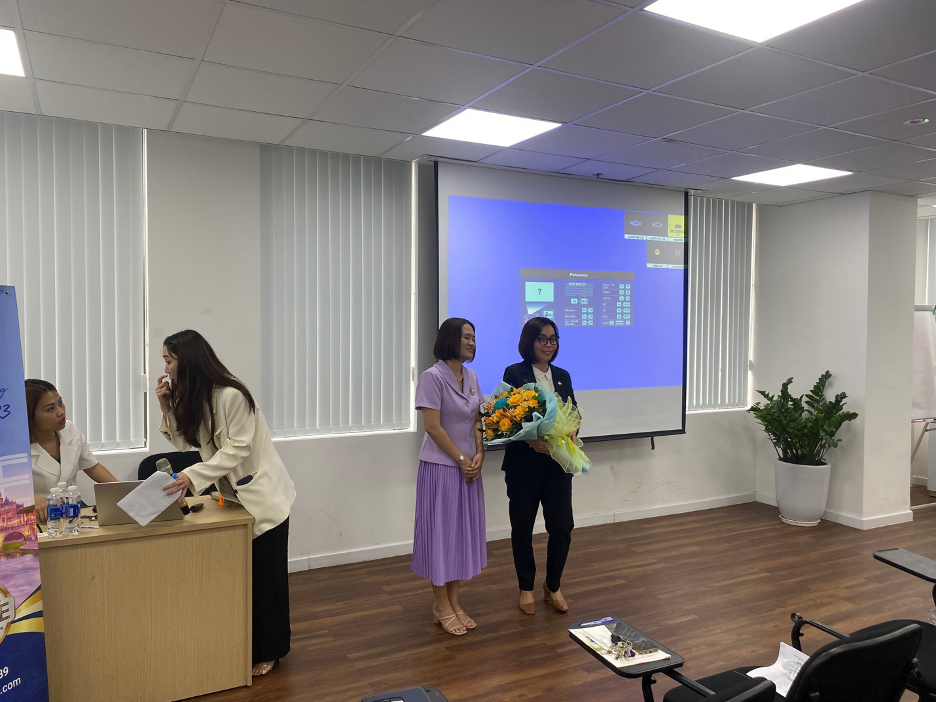 Đại diện khoa Tài chính – Ngân hàng trao hoa cảm ơn doanh nghiệp