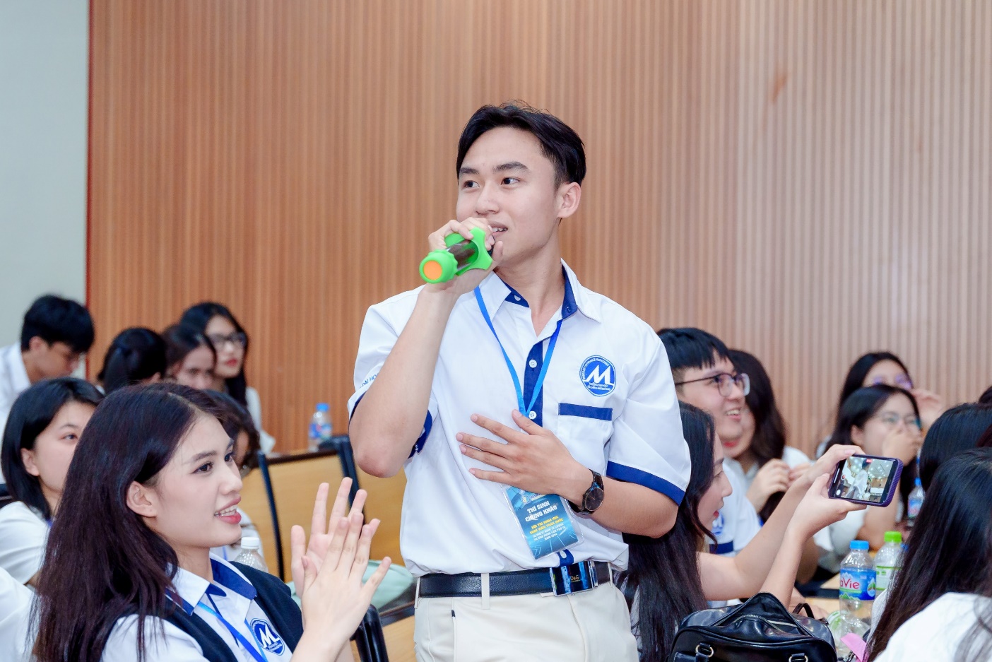 Hình 3 – Sinh viên Nguyễn Duy Minh, Trưởng Nhóm sinh viên đạt giải Nhì phát biểu cảm nghĩ khi tham gia cuộc thi.