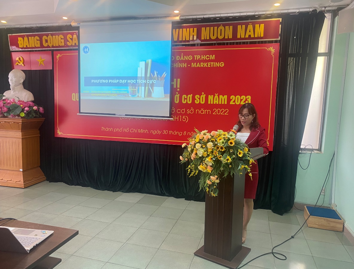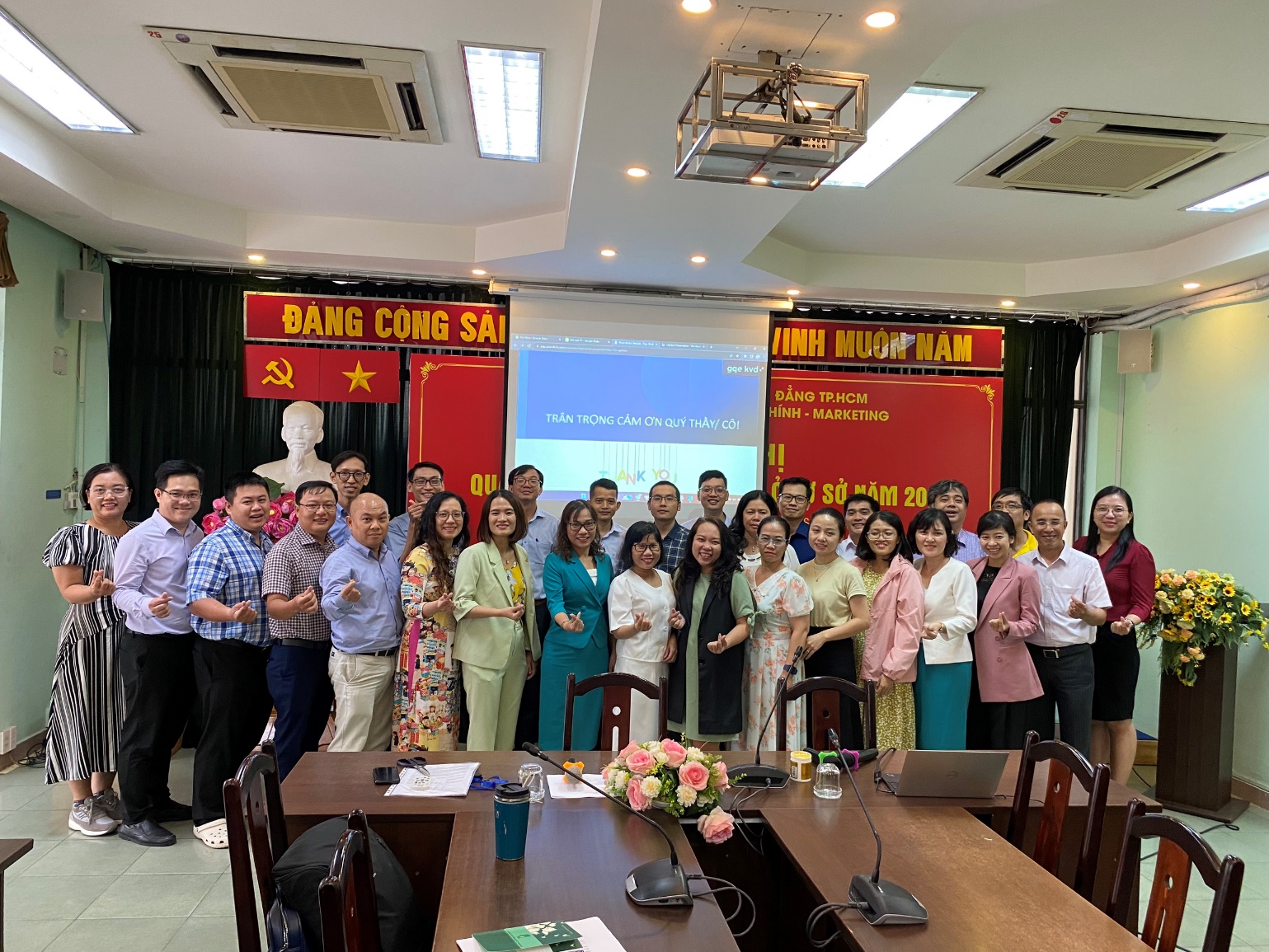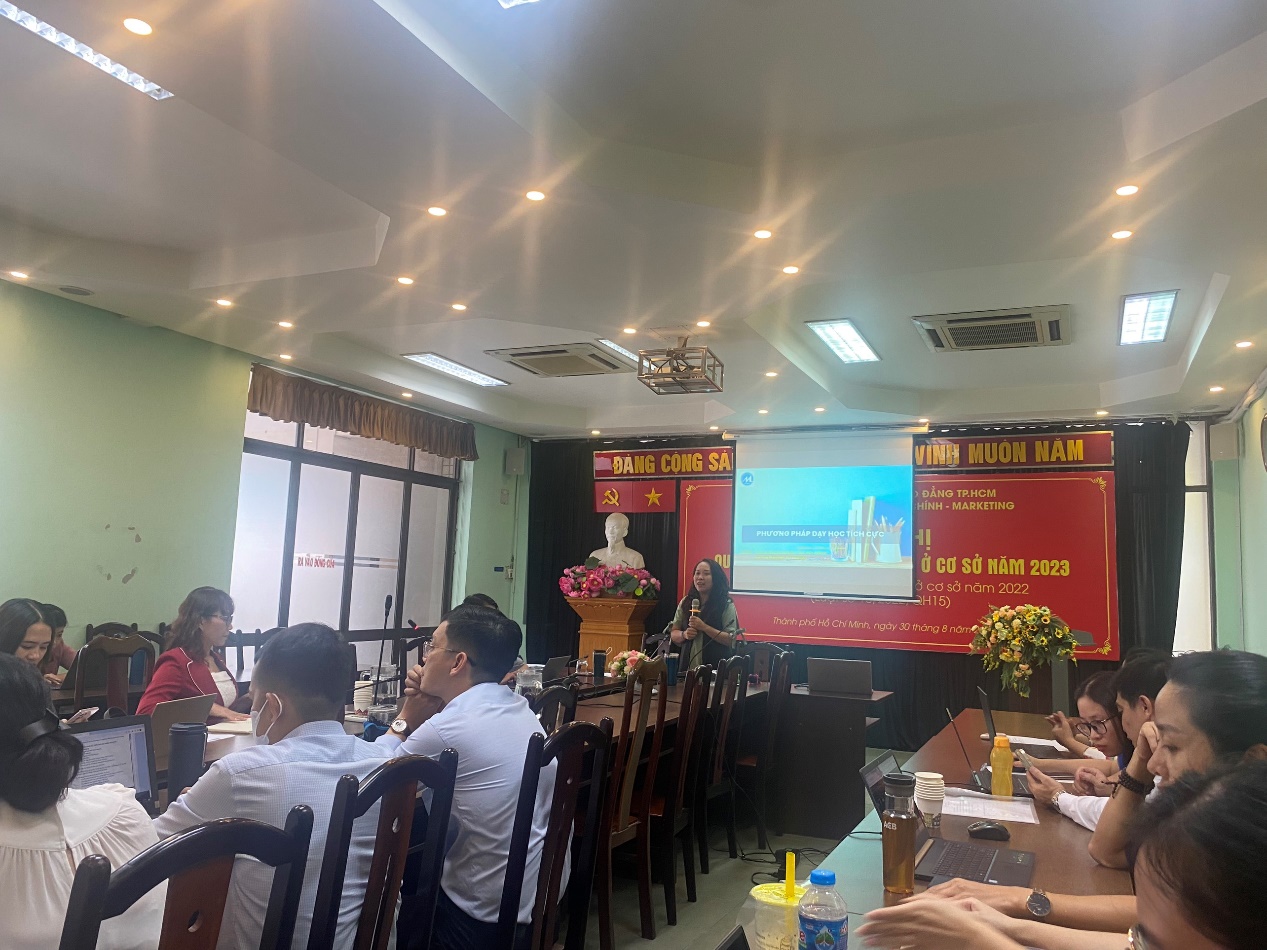 Với mong muốn nâng cao chất lượng giáo dục và đào tạo đồng thời tạo diễn đàn để giảng viên có cơ hội trao đổi, học hỏi kinh nghiệm về các phương pháp và công cụ giảng dạy hiện đại, Khoa Tài chính - Ngân hàng, Trường Đại học Tài chính – Marketing đã tổ chức tọa đàm với chủ đề “Đổi mới phương pháp giảng dạy và công cụ giảng dạy” vào lúc 14h00 ngày 13/09/2023. Tọa đàm được điều hành bởi PGS.TS.Nguyễn Thị Mỹ Linh – Trưởng khoa Tài chính Ngân hàng với sự tham gia trình bày của hai diễn giả khách mời là TS. Đào Xuân Phương Trang _ Trưởng bộ môn Tiếng Anh mại, Khoa tiếng anh, Trường đại học sư phạm và Ths. Cao Hồng Phát _Giảng viên Khoa tiếng anh, Trường đại học sư phạm.