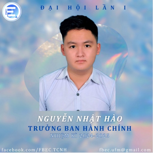 8 | Họ và tên: Nguyễn Nhật Hào Chức vụ: Sinh viên khoa TC-NH Chức danh trong Ban điều hành: Trưởng Ban Hành chính | |