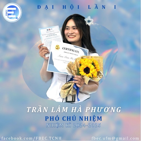 3 | Họ và tên: Trần Lâm Hà Phương Chức vụ: Sinh viên khoa TC-NH Chức danh trong Ban điều hành: Phó chủ nhiệm | |