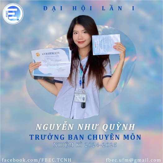 6 | Họ và tên: Đặng Trần Thảo Vy Chức vụ: Sinh viên khoa TC-NH Chức danh trong Ban điều hành: Trưởng Ban Truyền thông Kỹ thuật | |