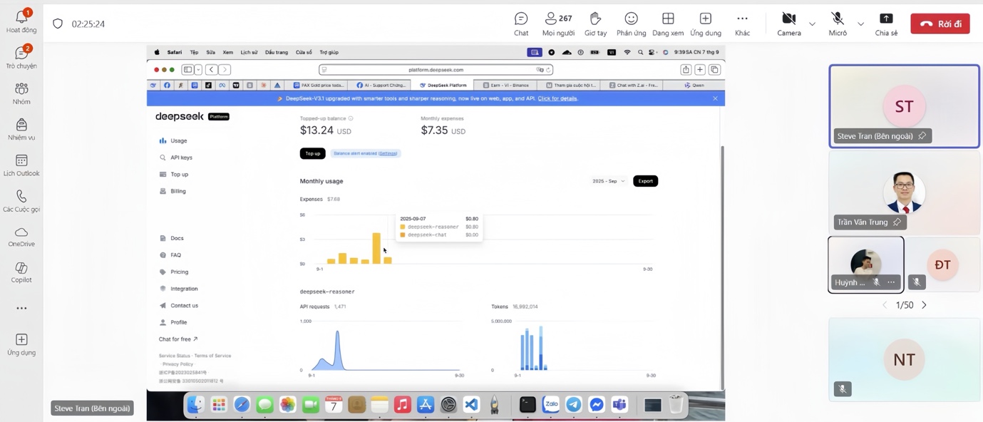 Hình 2: Minh họa giao diện nền tảng DeepSeek với thống kê chi phí và tần suất sử dụng trong phân tích dữ liệu.