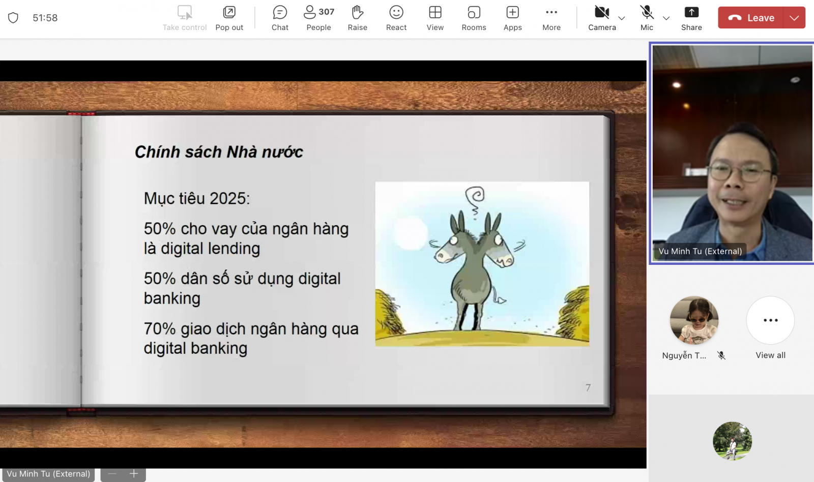 Hơn 300 sinh viên của khoa đang giao lưu trực tuyến cùng TS.Vũ Minh Tú, Giám đốc khối Thẩm định tín dụng ngân hàng TMCP Bản Việt
