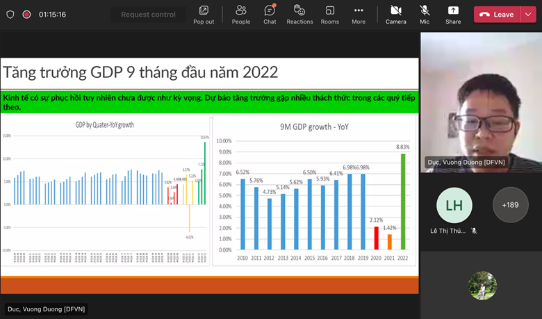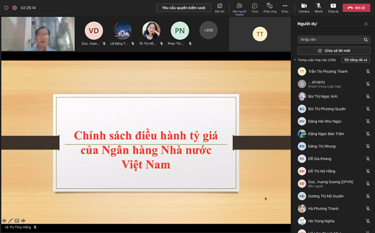 Với mục tiêu đào tạo theo định hướng ứng dụng, trường đại học Tài chính – Marketing nói chung và Khoa Tài chính – Ngân hàng nói riêng luôn cố gắng tạo môi trường học tập năng động nhất giúp các em Sinh viên tiếp cận với kiến thức thực tế. Để làm được điều này, Khoa Tài chính – Ngân hàng không ngừng tổ chức những chuỗi hoạt động kết nối giữa người học và doanh nghiệp, các chuyên gia kinh tế hàng đầu, một trong số đó là công tác tổ chức báo cáo chuyên đề. Bộ môn Ngân hàng vinh dự nhận được sự chỉ đạo từ BLĐ Khoa Tài chính – Ngân hàng chủ trì buổi báo cáo “Thị trường chứng khoán Việt Nam – bối cảnh trong nước và quốc tế” và “Chính sách điều hành tỷ giá của Ngân hàng Nhà nước Việt Nam” diễn ra vào ngày 5/11/2022 trên nền tảng Microsoft team.