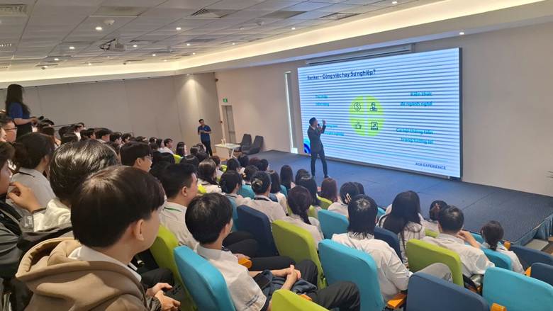 Hình 1: Chuyên gia ngân hàng ACB trình bày về thực tế tại ngân hàng