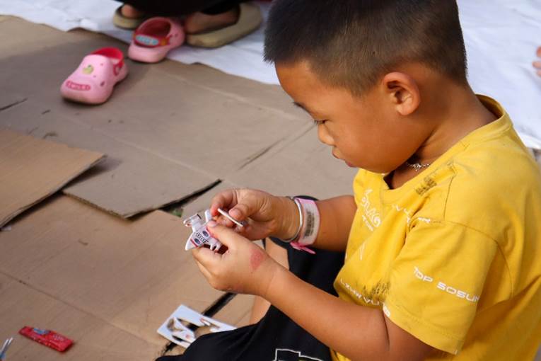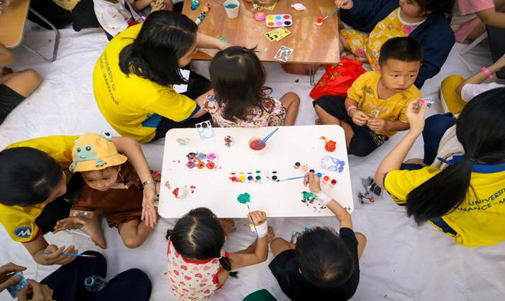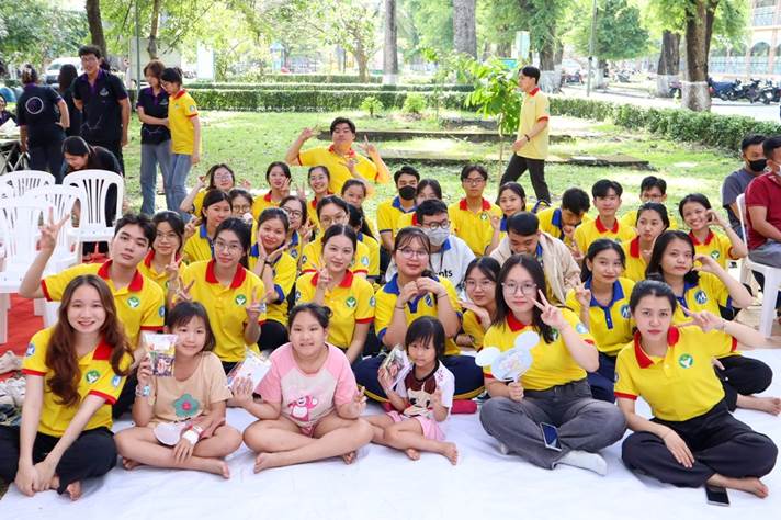 Hình 4: Hình ảnh các bạn sinh viên tại Trường đại học Tài chính – Marketing giao lưu các bạn nhỏ