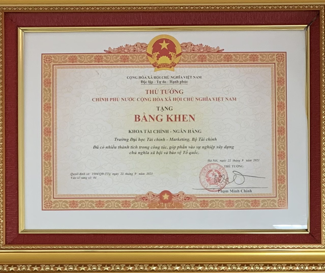 Giấy khen Hiệu trưởng Trường Đại học Tài chính – Marketing khen thưởng tập thể tiên tiến điển hình 5 năm liền (2015-2019)