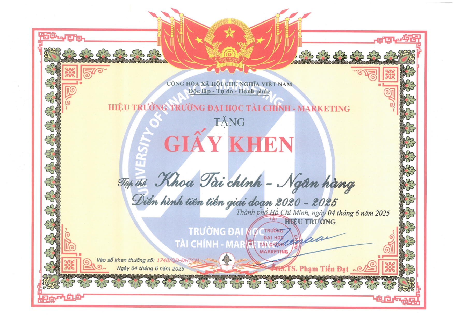 Giấy khen tập thể Khoa TCNH Điển hình tiên tiến giai đoạn 2020-2025