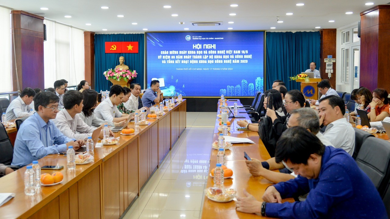 Ngày 17/05/2024, Trường đại học Tài chính – Marketing tổ chức Hội nghị chào mừng ngày Khoa học và Công nghệ Việt Nam và tổng kết hoạt động khoa học công nghệ năm 2023, tham gia Hội nghị có đại diện Ban Giám hiệu nhà trường, TS. Lê Trung Đạo - Phó Hiệu Trưởng và TS. Phạm Quốc Việt – Phó Hiệu Trưởng cùng toàn thể giảng viên, viên chức, nhà khoa học đến từ các Viện, các Phòng ban, các Khoa chuyên môn trong nhà Trường.