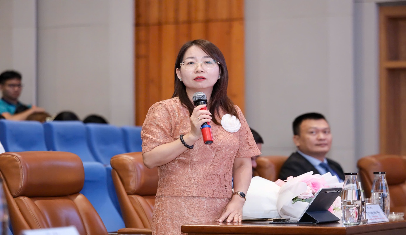 Hình 6: TS. Lê Thị Thùy Vân, Phó Viện trưởng Viện Chiến lược chính sách Kinh tế - Tài chính đặt câu hỏi và đóng góp ý kiến giải phát cho 2 bài phát biểu chính.