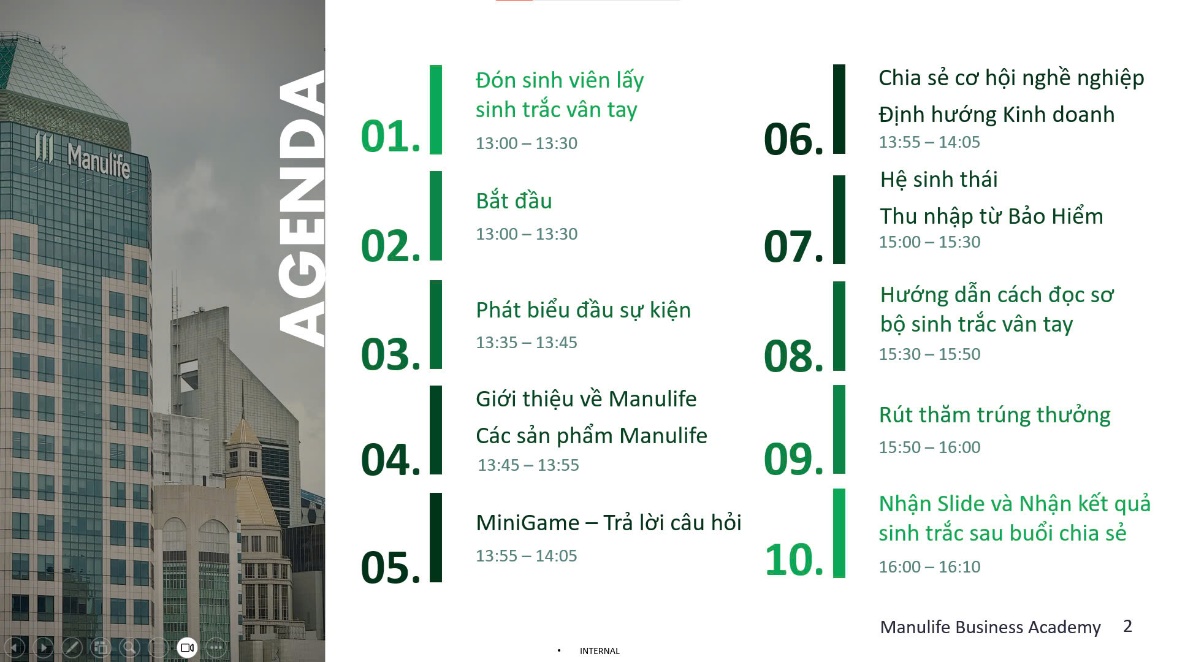 Hình 1. Chương trình tham quan thực tế tại Manulife