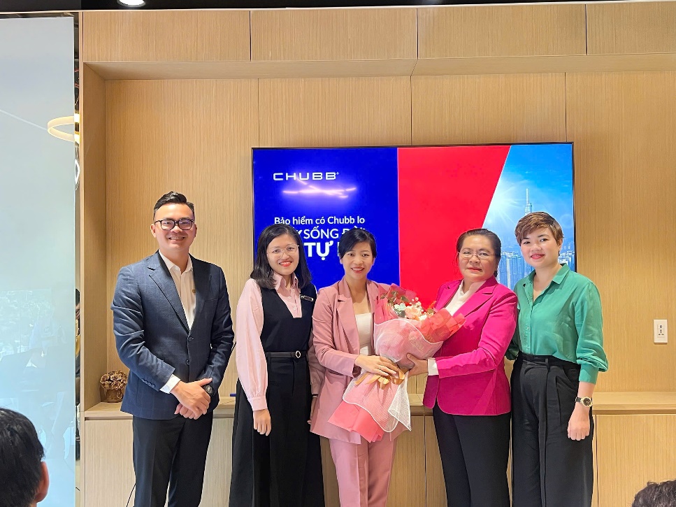 Hình 2. Giảng viên bộ môn Ngân hàng tặng hoa kỷ niệm cho đại diện công ty Chubb life