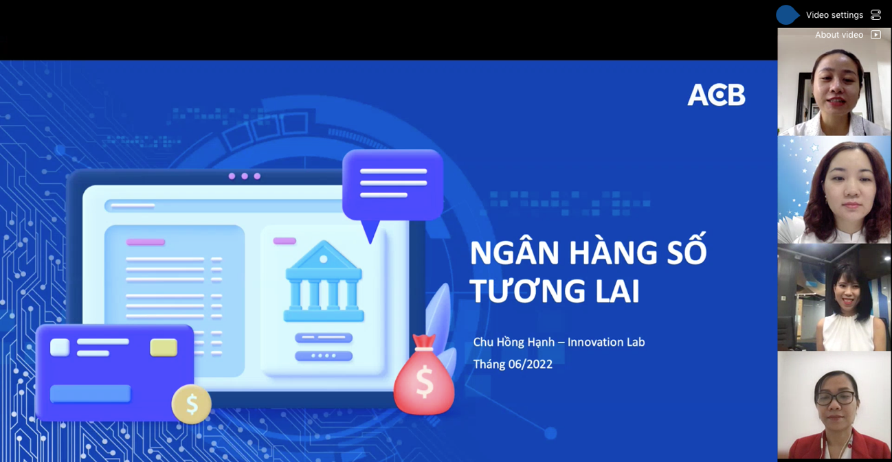 Bà Chu Hồng Hạnh, diễn giả bài báo cáo – Giám đốc Phòng sáng tạo – Ngân hàng thương mại cổ phần Á Châu cùng các cộng sự.
