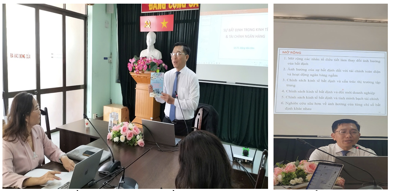 Buổi Seminar không chỉ tạo diễn đàn trao đổi học thuật giữa nghiên cứu sinh và giảng viên, mà còn là cơ hội để tiếp cận các quan điểm lý luận mới và ứng dụng thực tiễn trong bối cảnh kinh tế - tài chính toàn cầu nhiều biến động. Trong phần báo cáo chuyên đề, GS.TS Đặng Văn Dân đã phân tích những đặc điểm cốt lõi của rủi ro và sự bất định trong môi trường kinh tế hiện đại, từ đó gợi mở các hướng tiếp cận trong nghiên cứu mô hình tài chính – ngân hàng. Báo cáo được đánh giá cao về tính học thuật và ứng dụng, đặc biệt hữu ích cho các nghiên cứu sinh trong quá trình định hướng và triển khai luận án.