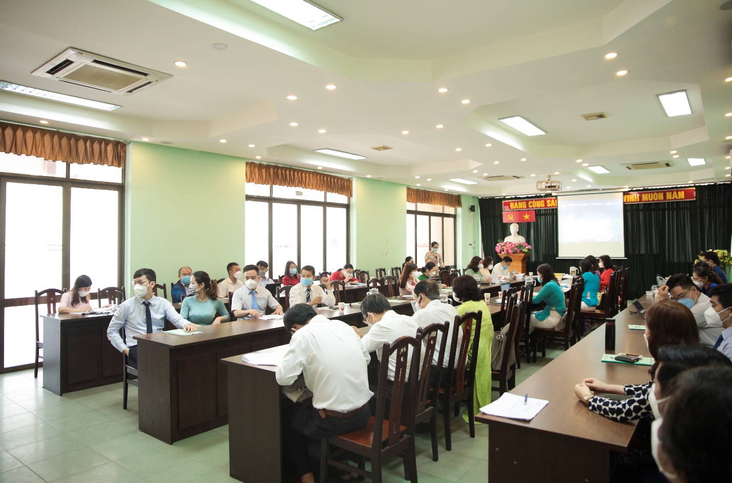 Căn cứ vào kế hoạch 1373/KH-ĐHTCM ngày 03/12/2021 về Tổ chức Hội nghị đại biểu viên chức và người lao động (VCNLĐ) Trường Đại học Tài chính Marketing năm 2022, sáng ngày 29/12/2021, Khoa Tài chính ngân hàng đã tổ chức Hội nghị VCNLĐ cấp Khoa. Đây là dịp để VCNLĐ của Khoa được tham gia ý kiến về công tác quản lý và giám sát những vấn đề liên quan đến quyền, lợi ích, nghĩa vụ và trách nhiệm của mình trong nhà trường.