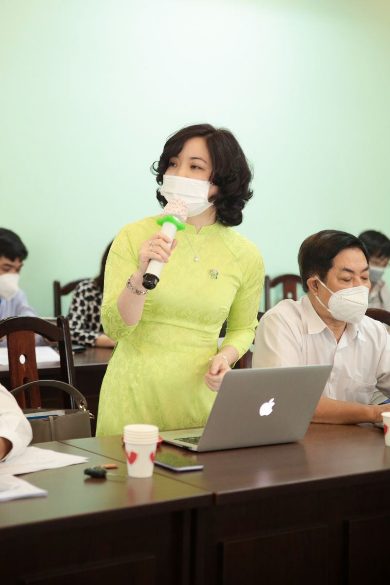 Tiến sĩ Trần Thị Kim Oanh - Trưởng bộ môn Tài chính Bảo hiểm và đầu tư, phát biểu ý kiến về công tác NCKH