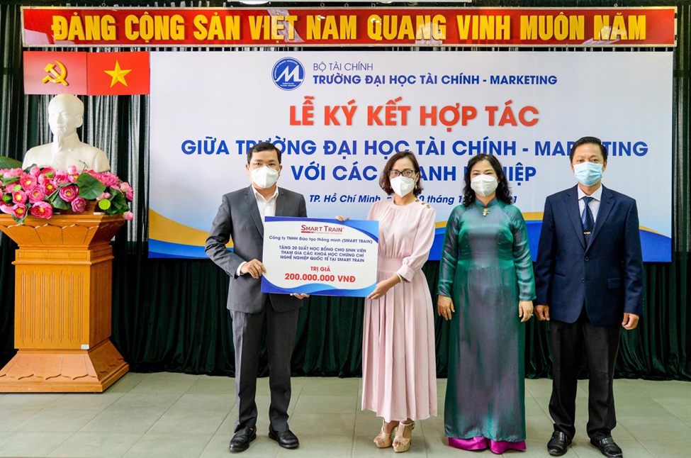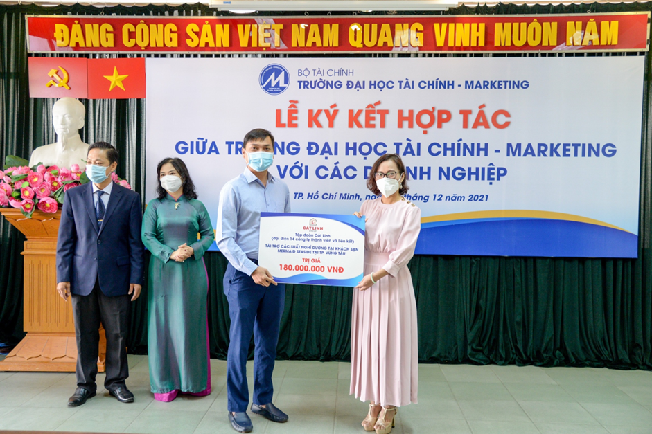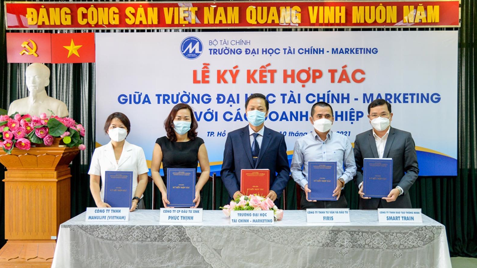 Sáng 10/12/2021, Trường ĐH Tài chính- Marketing (UFM) tổ chức ký kết và tiếp nhận tài trợ của 16 doanh nghiệp: Tập đoàn Cát Linh, Công ty TNHH Đào tạo thông minh (SMART TRAIN), Công ty Cổ Phần Đầu Tư XNK Phúc Thịnh, Công ty TNHH Manulife (Việt Nam), Công ty Cổ phần SAMETEL, Công ty cổ phần Chứng khoán Phú Hưng - chi nhánh Quận 3, Công ty Cổ phần Phát Triển Nhà Bắc Trung Nam, Công Ty TNHH Tư Vấn Và Đầu Tư FIRIS, Ngân hàng TMCP Eximbank - Chi nhánh Chợ Lớn, Công ty Bảo Hiểm Vietinbank Sài Gòn...
