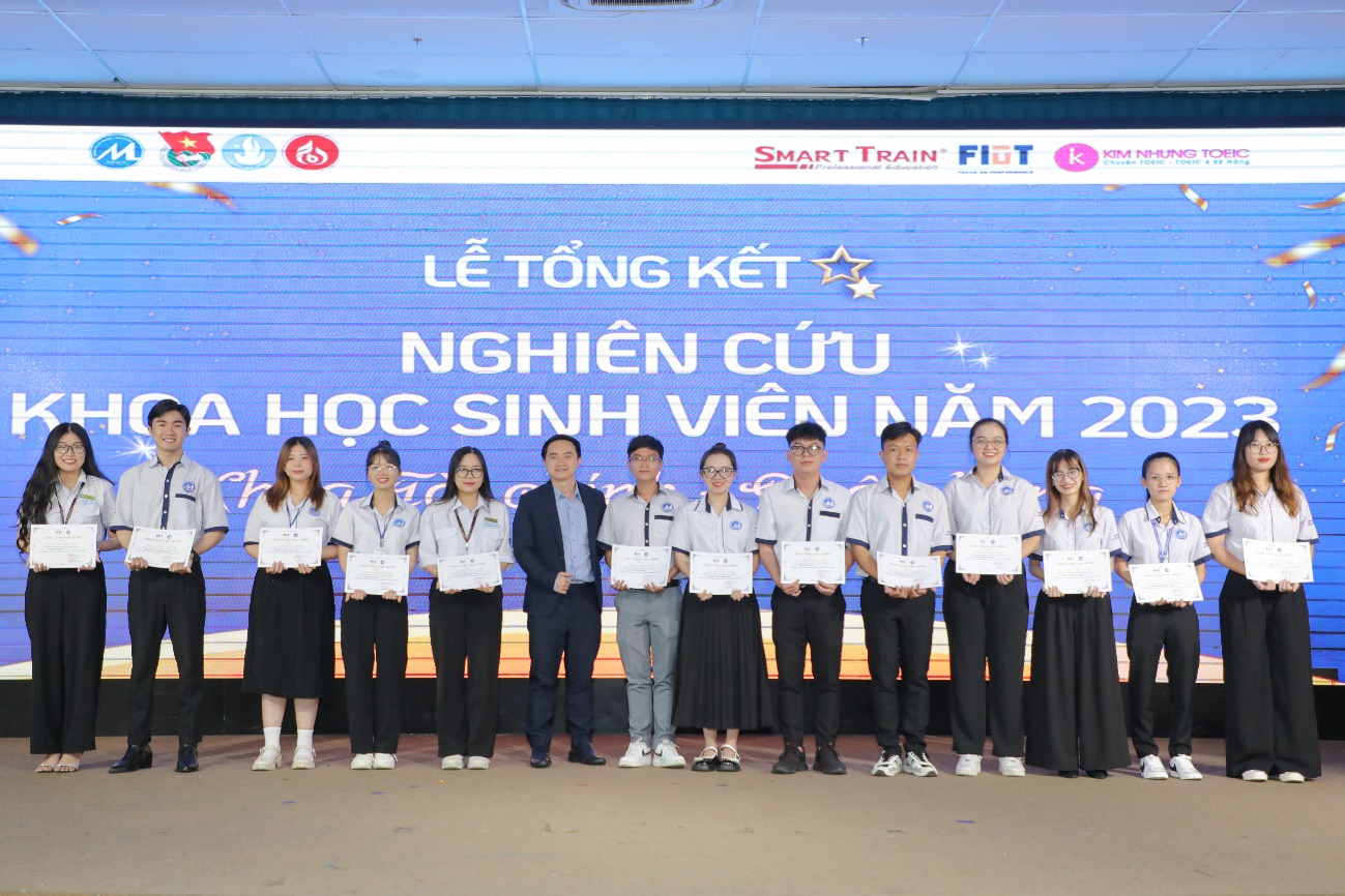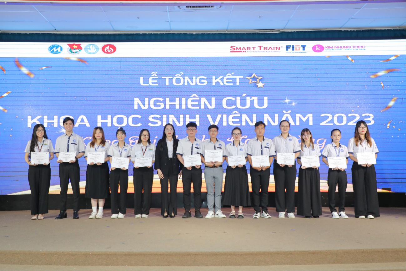 Cũng trong buổi lễ đại diện các nhà tài trợ đã trao các suất học bổng cho SV có thành tích cao trong hoạt động NCKH năm 2023. Đại diện công ty Smart Train đã trao 49 suất học bổng cho SV có thành tích cao trong hoạt động NCKH như sau: Giải Nhất - Học bổng 50% trọn khóa học ACCA và 40% trọn khóa học CFA; Giải nhì - Học bổng 45% trọn khóa học ACCA và 35% trọn khóa học CFA; Giải Ba - Học bổng 40% trọn khóa học ACCA và 30% trọn khóa học CFA và Giải khuyến khích - Học bổng 40% trọn khóa học ACCA và 30% trọn khóa học CFA. Tổng giá trị hơn 3.200 triệu đồng.