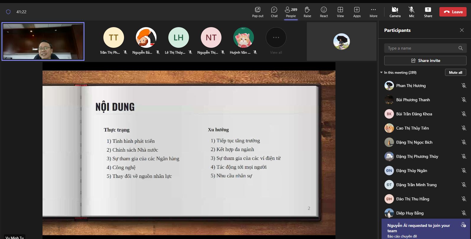 Hơn 300 sinh viên của khoa đang giao lưu trực tuyến cùng TS.Vũ Minh Tú, Giám đốc khối Thẩm định tín dụng ngân hàng TMCP Bản Việt
