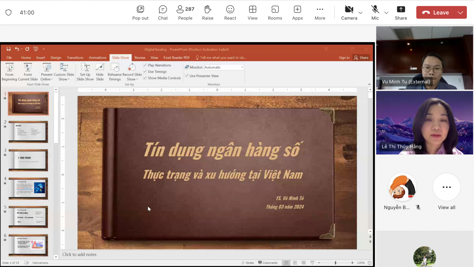 Trong thời đại của sự kết nối liên tục và sự phát triển không ngừng của công nghệ thông tin, việc tổ chức các buổi báo cáo chuyên đề trực tuyến đã trở thành một xu hướng phổ biến và không thể phủ nhận. Sự thuận tiện và linh hoạt của việc tham gia từ xa đã thu hút sự quan tâm của hơn 300 sinh viên đến với chủ đề “Ngân hàng số”. Với sự tận tâm và kiến thức sâu rộng trong lĩnh vực của mình, TS. Vũ Minh Tú đã chia sẻ những thông tin mới nhất, những phân tích sâu sắc và những góc nhìn độc đáo trong lĩnh vực Tín dụng ngân hàng số cũng như thực trạng và xu hướng tại Việt Nam hiện nay. Bằng cách truyền đạt kiến thức và thông tin chuyên sâu của mình thông qua nền tảng trực tuyến, TS. Vũ Minh Tú không chỉ chia sẻ kinh nghiệm và hiểu biết của mình mà còn tạo ra một môi trường tương tác sôi nổi, kích thích sự thảo luận và hợp tác với sinh viên của khoa.