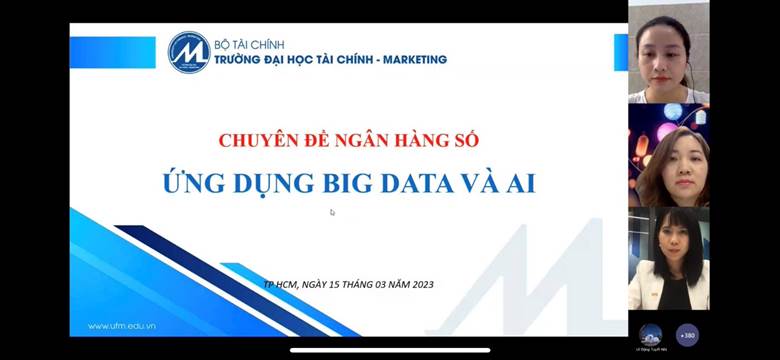 Với sự phát triển nhanh chóng của khoa học công nghệ, trong những năm gần đây, trí tuệ nhân tạo (AI) và dữ liệu lớn (big data) đang dần được ứng dụng trong nhiều lĩnh vực khác nhau như chăm sóc sức khỏe, kinh doanh, giáo dục, sản xuất, tài chính… và ngân hàng không nằm ngoài xu hướng ấy. Với các ngân hàng thì đây được coi như nhiệm vụ, chiến lược giúp các tổ chức này thúc đẩy hoạt động kinh doanh và quản lý rủi ro hiệu quả. Thay vì xử lý công việc theo phương pháp truyền thống như trước đây thì bây giờ ngân hàng có thể sử dụng công nghệ để giải quyết các tác vụ nhanh chóng với độ chính xác cao. Nhằm mục tiêu trang bị cho Sinh viên những kiến thức thực tế về hoạt động của ngân hàng thương mại trong thời kỳ chuyển đổi số, ngày 15 tháng 3 năm 2023 vừa qua, Khoa Tài chính – Ngân hàng trường Đại học Tài chính – Marketing đã tổ chức buổi báo cáo chuyên đề “Ứng dụng Big data và AI trong ngân hàng số”.