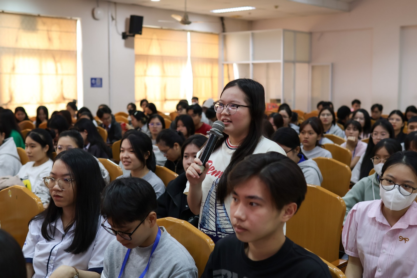Hình 4: Các bạn sinh viên UFM tự tin bày tỏ thắc mắc và chia sẻ câu chuyện cá nhân, biến buổi talkshow trở thành không gian học hỏi và kết nối đầy ý nghĩa