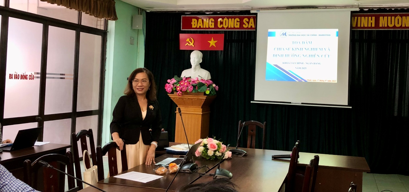 Theo công văn 614/KH-ĐHTCM-QLKHHTQT ngày 04/03/2025 của Trường Đại học Tài chính – Marketing về Phân công triển khai thực hiện hệ thống chỉ tiêu năm 2025 thuộc Lĩnh vực số 4: “Hoạt động khoa học và hợp tác quốc tế”, Khoa Tài chính – Ngân hàng được phân công thực hiện các nhiệm vụ nghiên cứu khoa học như thực hiện ít nhất 02 đề tài cấp Bộ, 20 đề tài cơ sở, 23 bài báo quốc tế, 88 bài báo trong nước,… Nhằm chia sẻ kinh nghiệm và hỗ trợ kiến thức cho giảng viên trong Khoa để có thể hoàn thành nhiệm vụ được giao, vào chiều thứ năm, ngày 17/07/2024, tại phòng B001 – cơ sở 778 Nguyễn Kiệm, Phường Đức Nhuận, TP. Hồ Chí Minh, Khoa Tài chính – Ngân hàng, đã tổ chức buổi tọa đàm chuyên đề với chủ đề: “Chia sẻ kinh nghiệm và định hướng nghiên cứu năm 2025” với mục tiêu nâng cao năng lực nghiên cứu khoa học cho giảng viên trong Khoa, đồng thời tạo điều kiện chia sẻ kinh nghiệm thực tiễn và định hướng triển khai các nghiên cứu phù hợp với thực tiễn cũng như định hướng phát triển của nhà trường. Chương trình có sự tham dự của Ban lãnh đạo Khoa, Trưởng các bộ môn, giảng viên, viên chức Khoa.