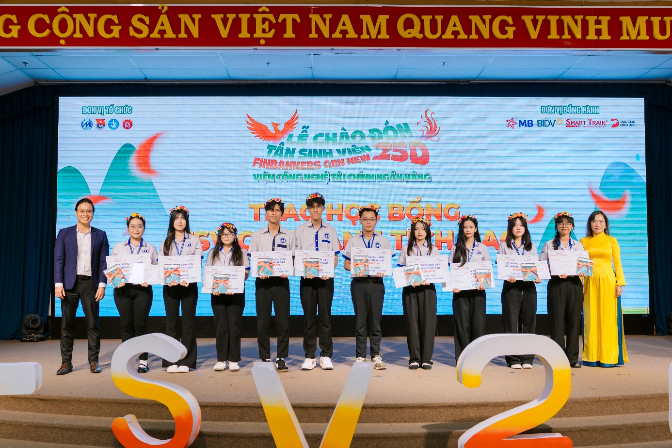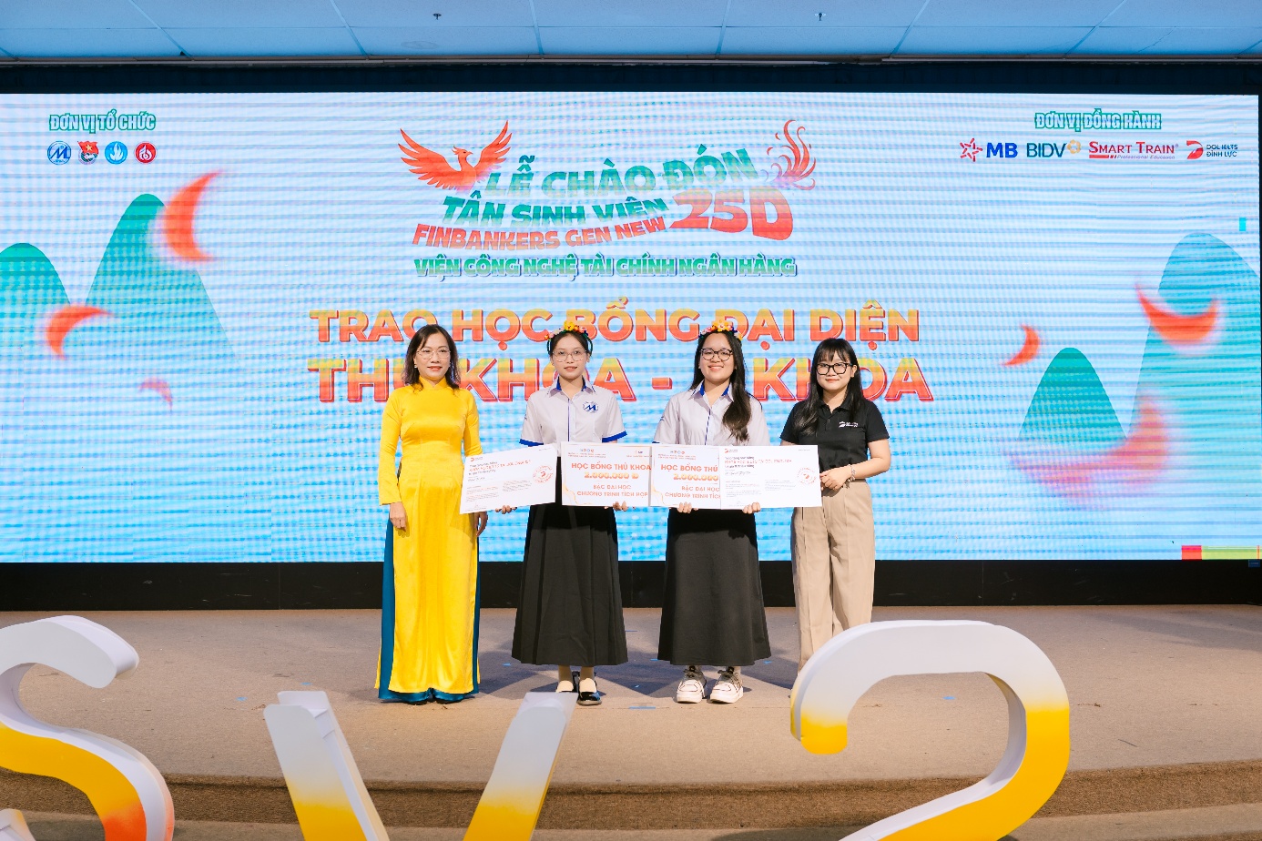 Trong khuôn khổ chương trình, Viện Công nghệ tài chính ngân hàng vinh danh 02 Thủ khoa, 02 Á khoa đầu vào, Top 10 sinh viên có điểm tuyển sinh đầu vào cao nhất của Viện cùng các cá nhân là cán bộ Đoàn – Hội – Câu lạc bộ có thành tích xuất sắc. Hoạt động mang ý nghĩa ghi nhận thành tích học tập nổi bật của sinh viên khóa mới, đồng thời lan tỏa tinh thần phấn đấu trong toàn Viện. Các suất học bổng khuyến khích học tập được trao tặng nhờ sự đồng hành và hỗ trợ từ Ngân hàng TMCP Quân đội (MB Bank), Ngân hàng TMCP Đầu tư & Phát triển Việt Nam (BIDV) – chi nhánh Bắc Sài Gòn, DOL English (IELTS Đình Lực) và Công ty TNHH Học Viện Smart Train, góp phần tiếp thêm động lực cho sinh viên trên hành trình học tập và rèn luyện tại trường.